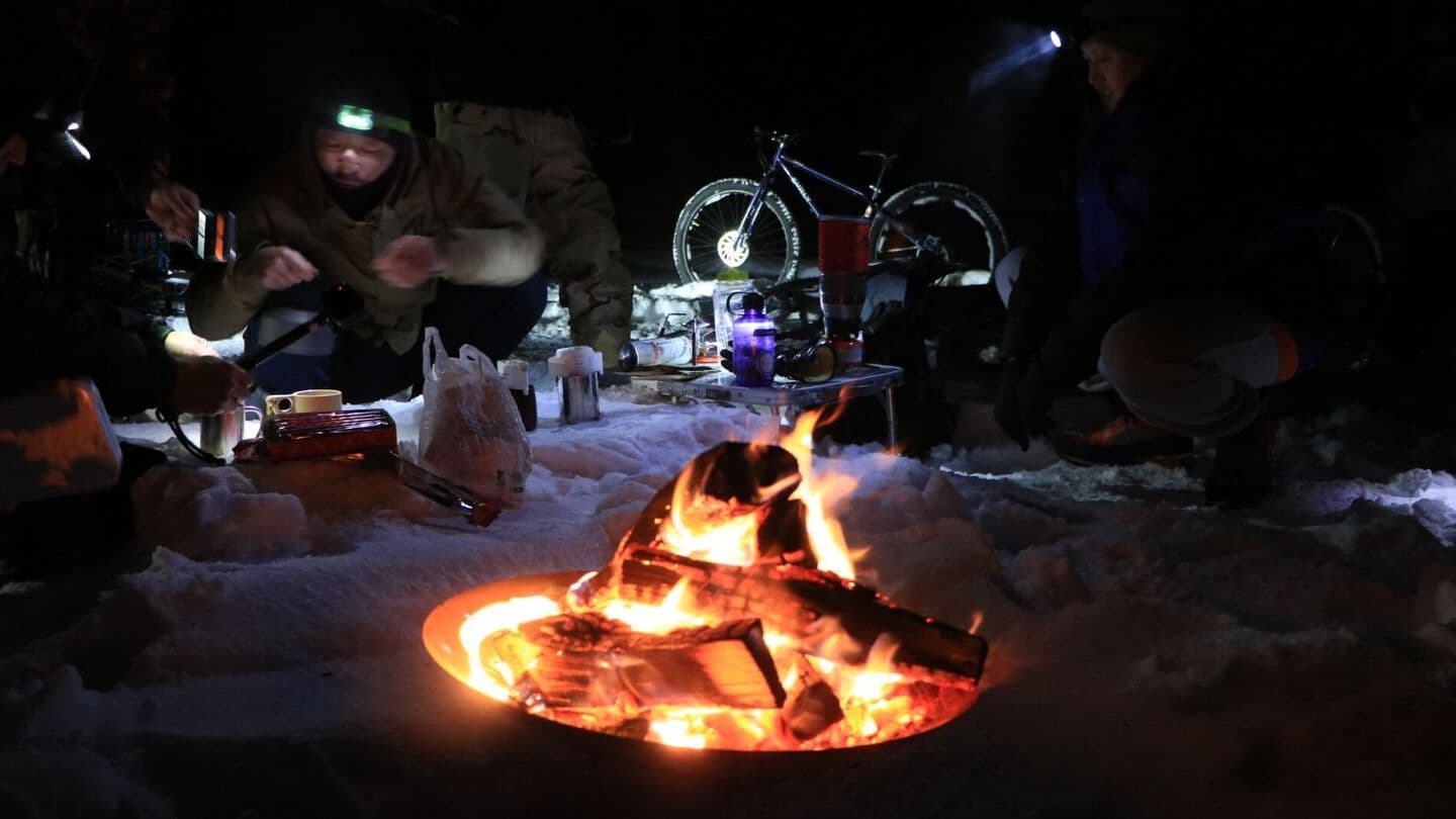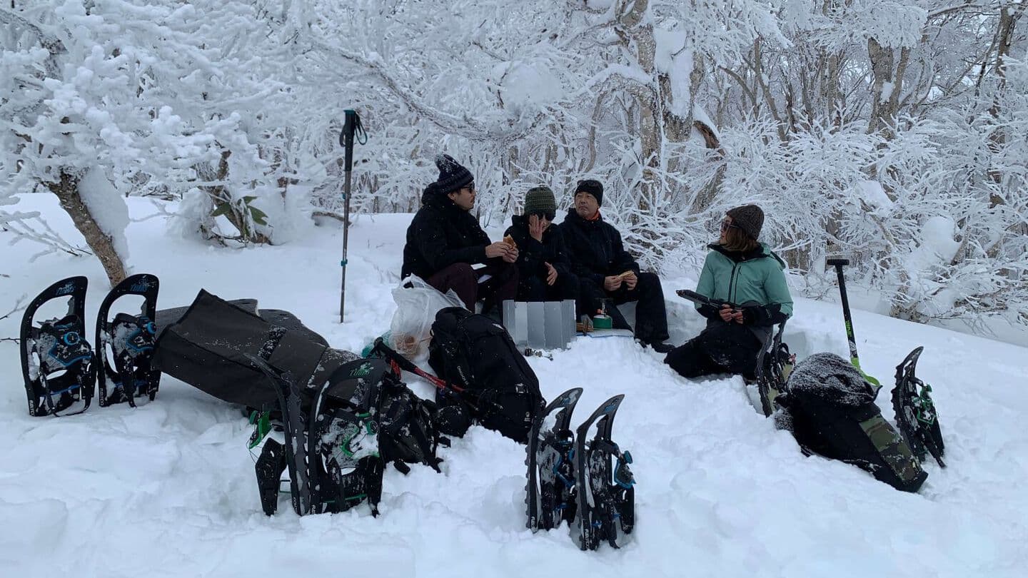 軽食付き裏山散歩ツアー。寒い中での温かいスープは体がポカポカになります。